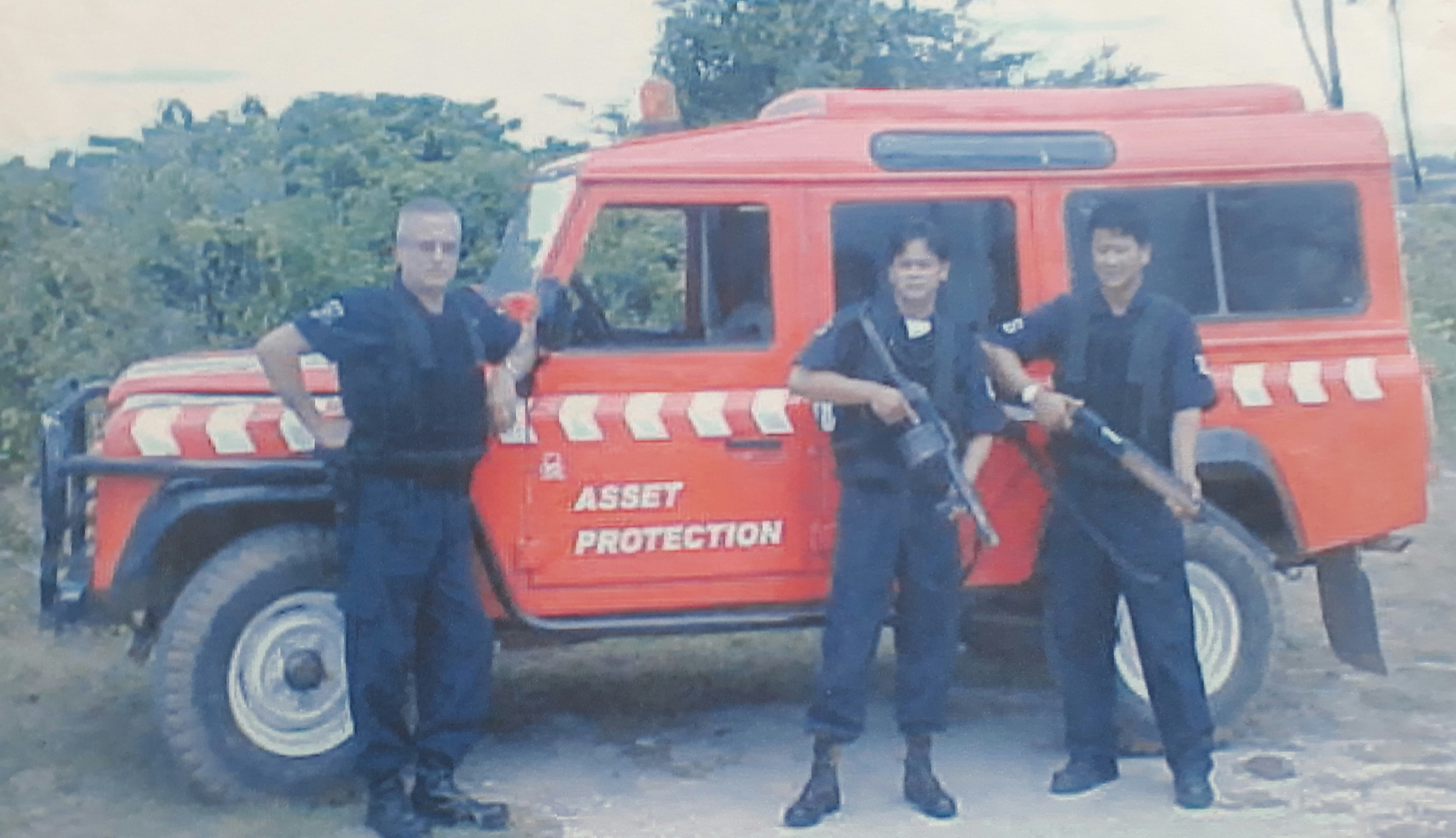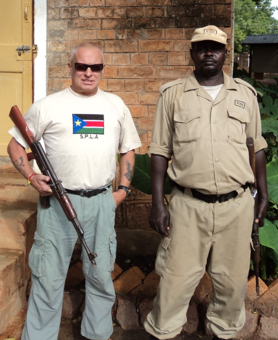 Yours truly…My Asset Protection team (me, Ferdi Acosta, and Bijay Tschering) – We collected the gold product from five individual gold mines (Kahama Mining, Placer Dome, Golden Pride, and so on) located in remote locations of the northern Mara region of Tanzania (Birharamulo, Geita, Gokona, etc), and moved it by light aircraft to the International Airport in Dar es SalaamOff to work on a task (at my house in Dar es Salaam).Simon Falkner at the rear at his desk in our first VSS office in Juba (with me and two of the lads trying to repair a filing cabinet!)Rian (l) and Matt (r) of VSS, having a giggle on the Nimule Road, South Sudan In Juba, South Sudan, with VSS (a Saladin Group asset).In Wau, Western Bhar es Gazahl, South Sudan.Instructing new VSS recruits on the live firing ranges at the SPLA Officer Training Academy, South SudanSPLA soldiers in South SudanAkole cattle in a Dinka villageSPLA soldiers in South SudanOn airstrip overwatch, in El Kuran, in the desert of the Ogaden disputed region, EthiopiaDinka girls pumping water at a boreholeAs Country Risk Manager for an NGO (PSI) in Afex River Camp, Juba, South SudanAfter I gave First Aid to this lady, who had collapsed with heat exhaustion in Juba, we got her into an ambulance and she survived (that’s me in the bald wig!).The ‘office’ in El Kuran, The Ogaden, EthiopiaDelivering daily food to a small group of lepers living rough in Juba, 2006A gathering of wounded SPLA veterans (Dinka tribe) in Aweil, South SudanMy car is stopped by National Security officers and Government of South Sudan soldiersA woman and her baby in Marial BaaiThis Russian T54 tank was left abandoned after the war, lying on the Nimule road, South SudanArmy wrecks left over from the war, abandoned along the River Nile (beyond the tree line)WFP warehouses in AweilA Dinka tribal danceUN Humanitarian flight, in South SudanDinka women and youngstersUN WFP Humanitarian Air Services aircraftA village in AweilA ‘baraza’ – a gathering of elders and villagers under the shade of a tree in AweilRebels from across the border are also known to attack and kill tourists.Border clashes with the DRC – rough justice