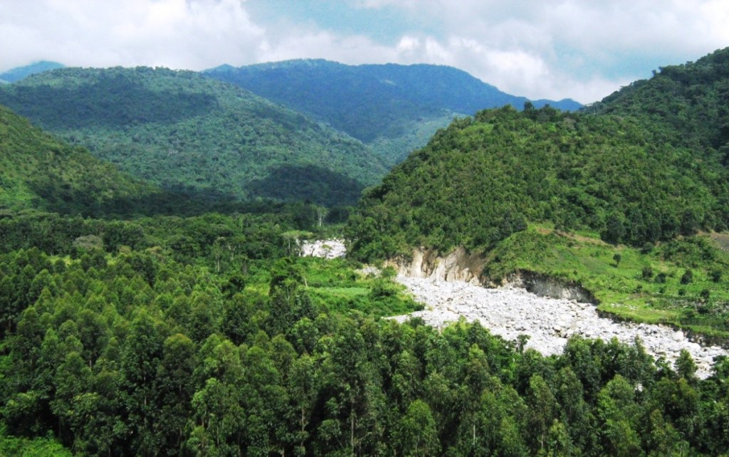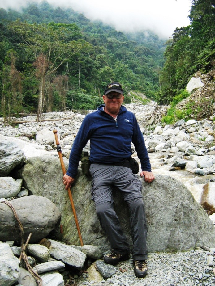 Fig ii. An almost sheer drop down into the river valley. The massive damage was caused by thousands of boulders and rocks being washed down from the higher elevations in the great El Nino storms.